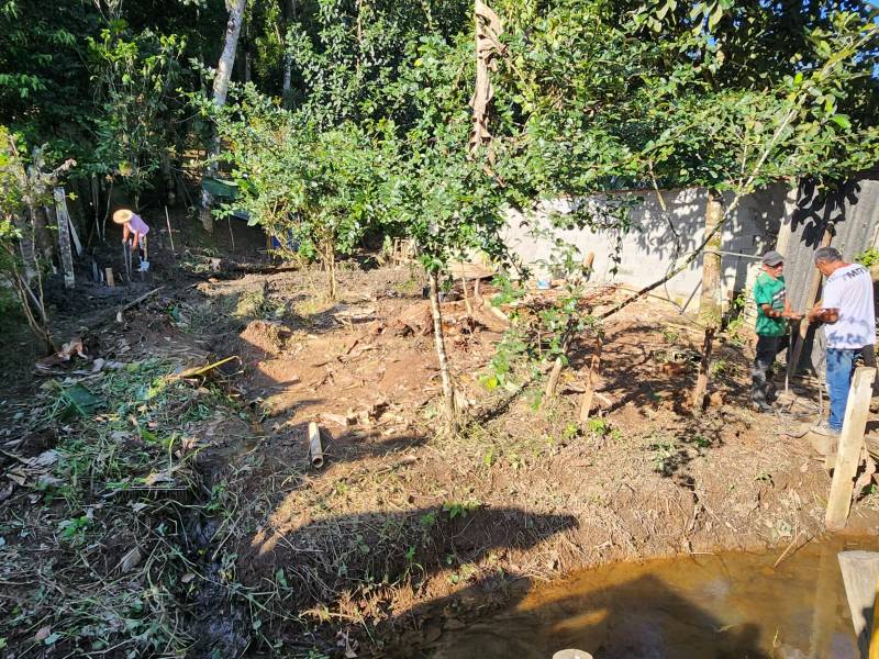 Frutas variadas, horta, canteiro, espaço para construção ou outras plantações, reuso da água de modo sustentável, fogão de lenha, pássaros mansos e patos a vontade, um lugar para ter paz.